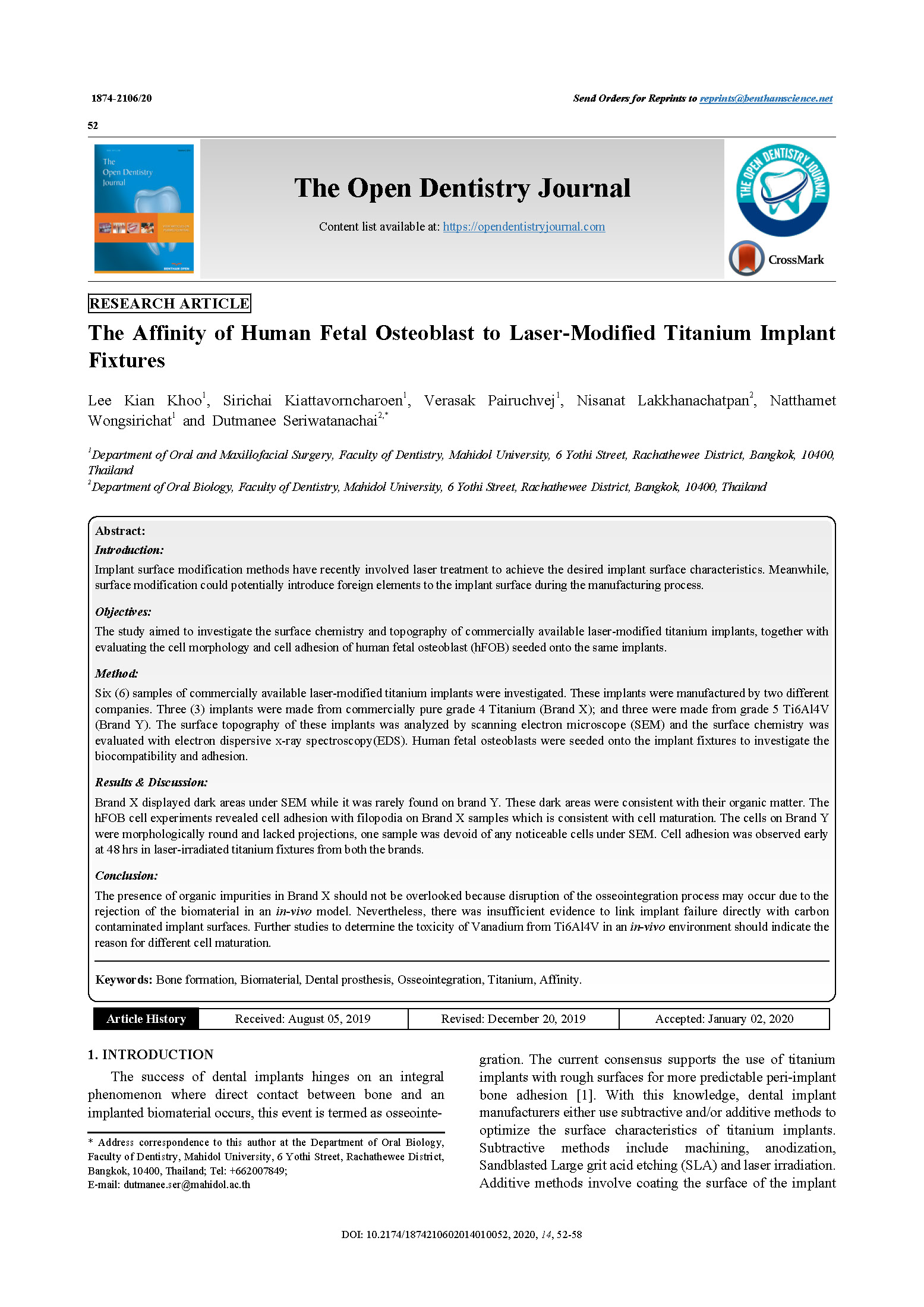 The Affinity of Human Fetal Osteoblast to Laser-Modified Titanium Implant Fixtures